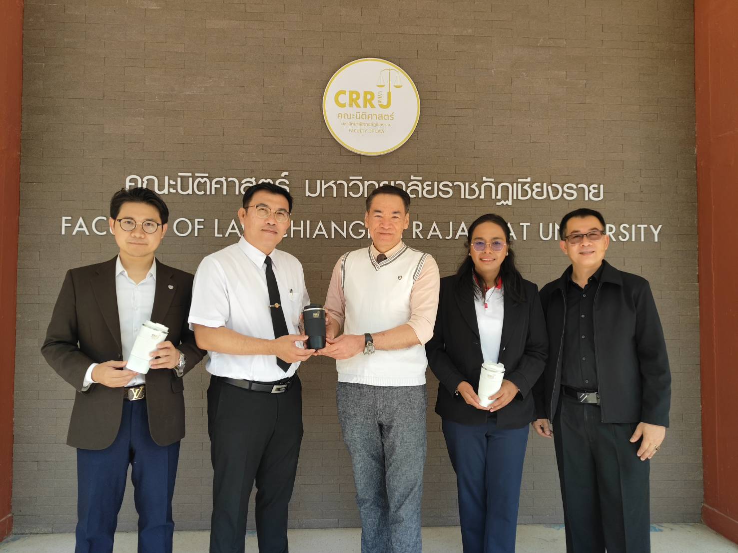 ผศ.ทศพร มูลรัตน์ คณบดีคณะนิติศาสตร์ มหาวิทยาลัยราชภัฏเชียงราย ให้การต้อนรับ รศ. ดร.ชูเกียรติ น้อยฉิม คณบดีสำนักวิชานิติศาสตร์ มหาวิทยาลัยแม่ฟ้าหลวง พร้อมทีมผู้บริหาร "แลกเปลี่ยนแนวทางการจัดการศึกษาสาขาวิชานิติศาสตร์"